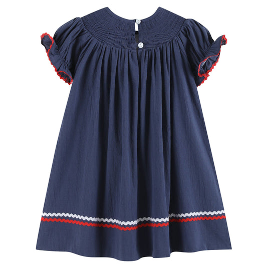 Navy Blue Santa Smocked Bishop Dress