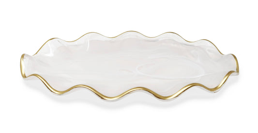 White Alabaster Oval Tray With Gold Ruffled Border (2 Sizes)
