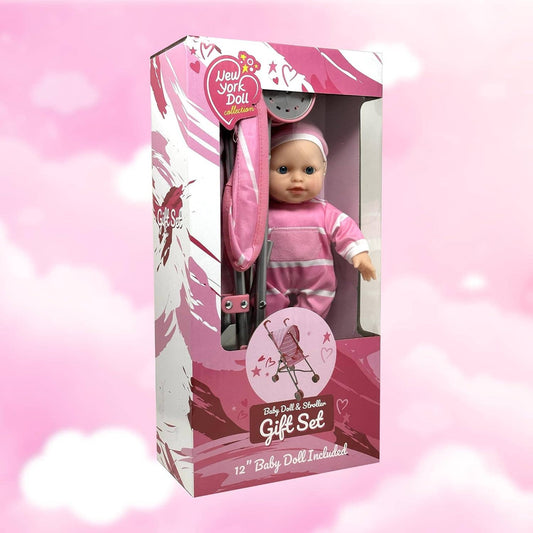 Baby Doll Stroller & 12" Baby Doll with Pacifier Gift Set