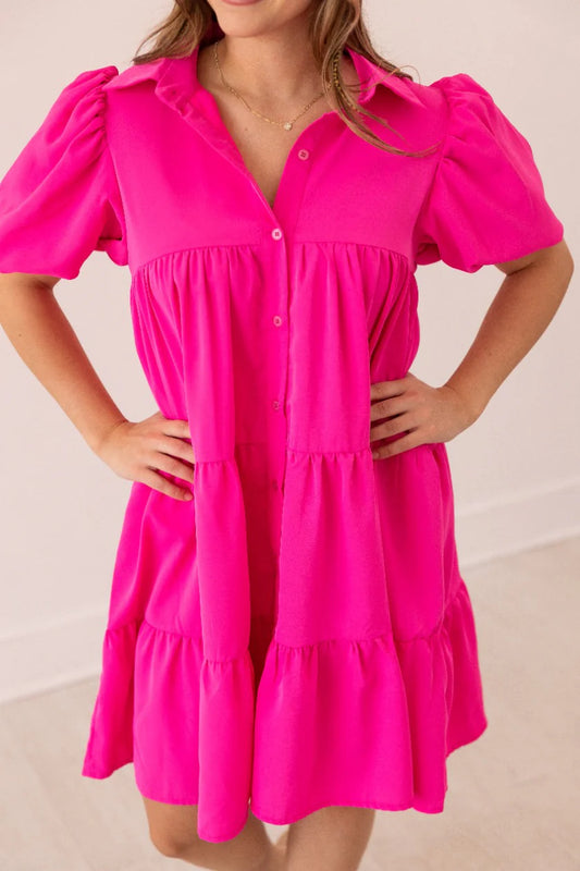 Solid Color Ruffle Ruched Short Sleeve Buttoned Shirt