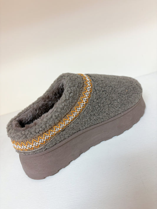 Bamboo Platform Fleece Strap Sandals (Brown)