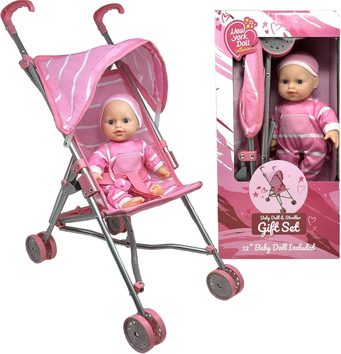 Baby Doll Stroller & 12" Baby Doll with Pacifier Gift Set