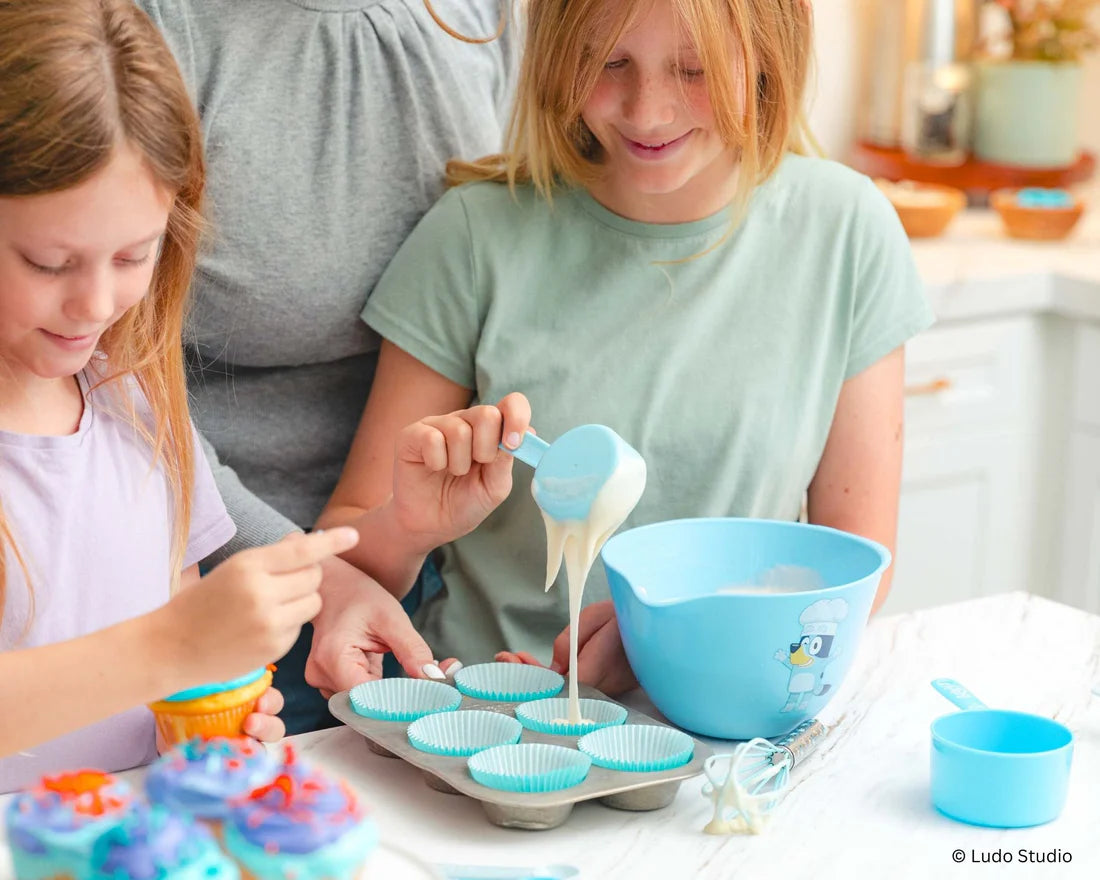 Get ready for fun in the kitchen with Bluey and her very own cooking set! This starter set for real kitchen use makes it easy for young chefs to measure and mix, so they can gain confidence stirring up their own culinary creations.
