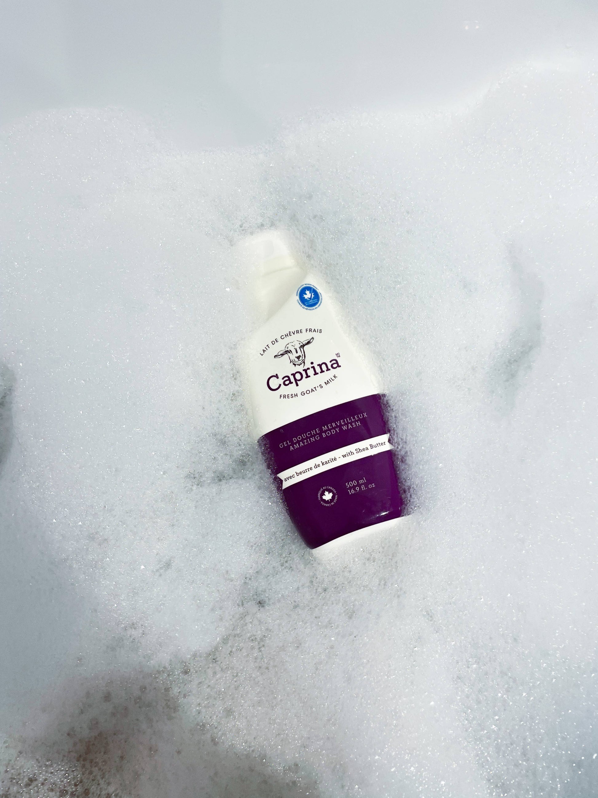 The entire Caprina product line is produced with fresh goat's milk that we collect from local goat farmers. With its luscious lather, our fresh goat's milk body wash gently cleanses and indulges your skin. Our recipe prepared with shea butter leaves a sweet scent on the skin and leaves no one indifferent.