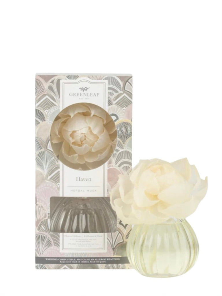 Our Flower Diffuser includes your favorite Greenleaf fragrance oil and a sola paper flower that emits a beautiful, blooming scent for up to 60 days! As the fragrance oils are absorbed through the wick, the flower begins to “bloom,” slowly emitting the fragrance and eventually resembling real flower petals. With the neutral color of the oil and the large flower, it will enhance and complement any space.