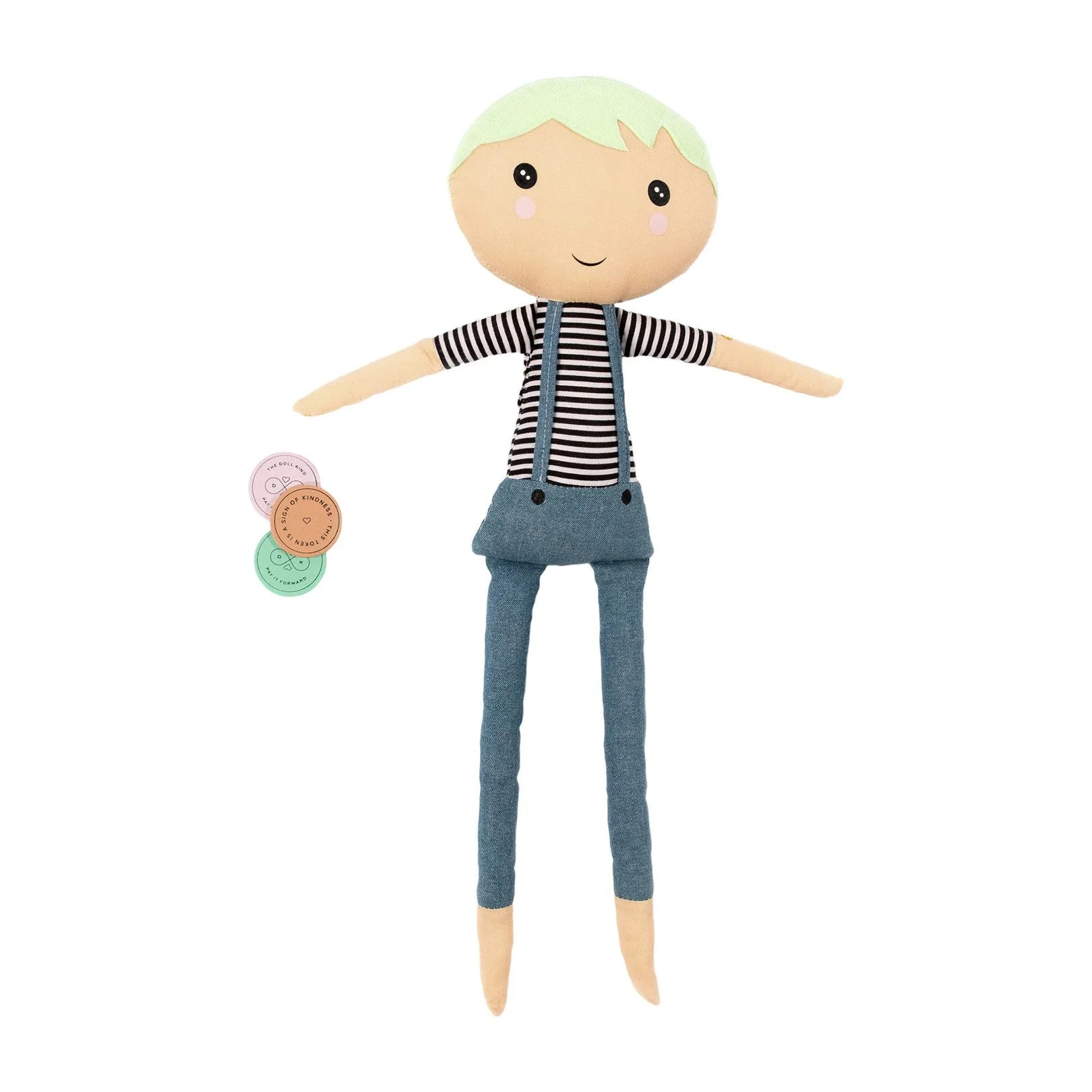 Standing at 18 inches tall, the Hope Doll is a soft and huggable doll that comes with a "kindness kit". Each kit includes 10 tokens with special phrases on them to show gratitude, love, and kindness and are meant for minis to give out as acts of kindness. He also has a secret pocket on the back to store a token. The Hope Doll comes with a naming certificate and by naming him, your mini agrees to join him on a mission to spread love!