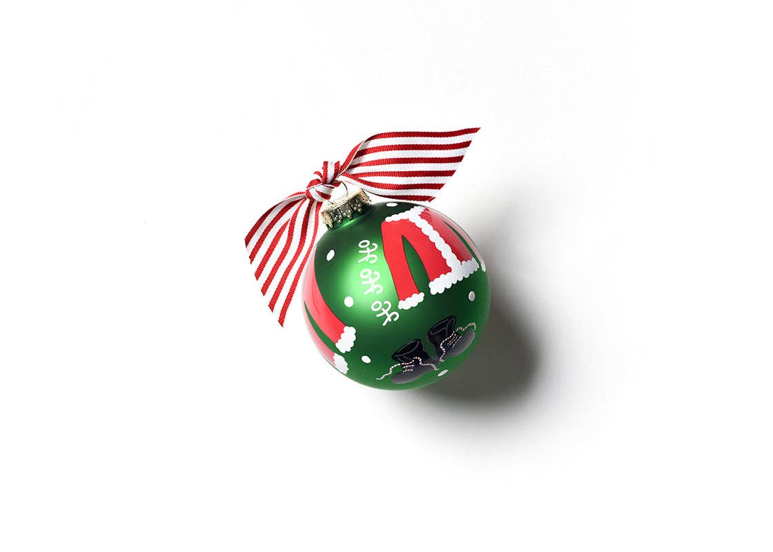 Let Santa’s infectious spirit fill your heart with our Santa Starter Pack Glass Ornament. This whimsical design features traditional red and green colors with playful pieces of Santa’s wardrobe spread across a green background. Whether decking out your tree or sharing the magic and merriment of Santa Claus with family, this glass ornament is your gateway to spreading smiles through the holiday season and beyond. Commemorate the special season with a personalized message and add this festive design to the story you are telling with your own Glass Ornament collection.