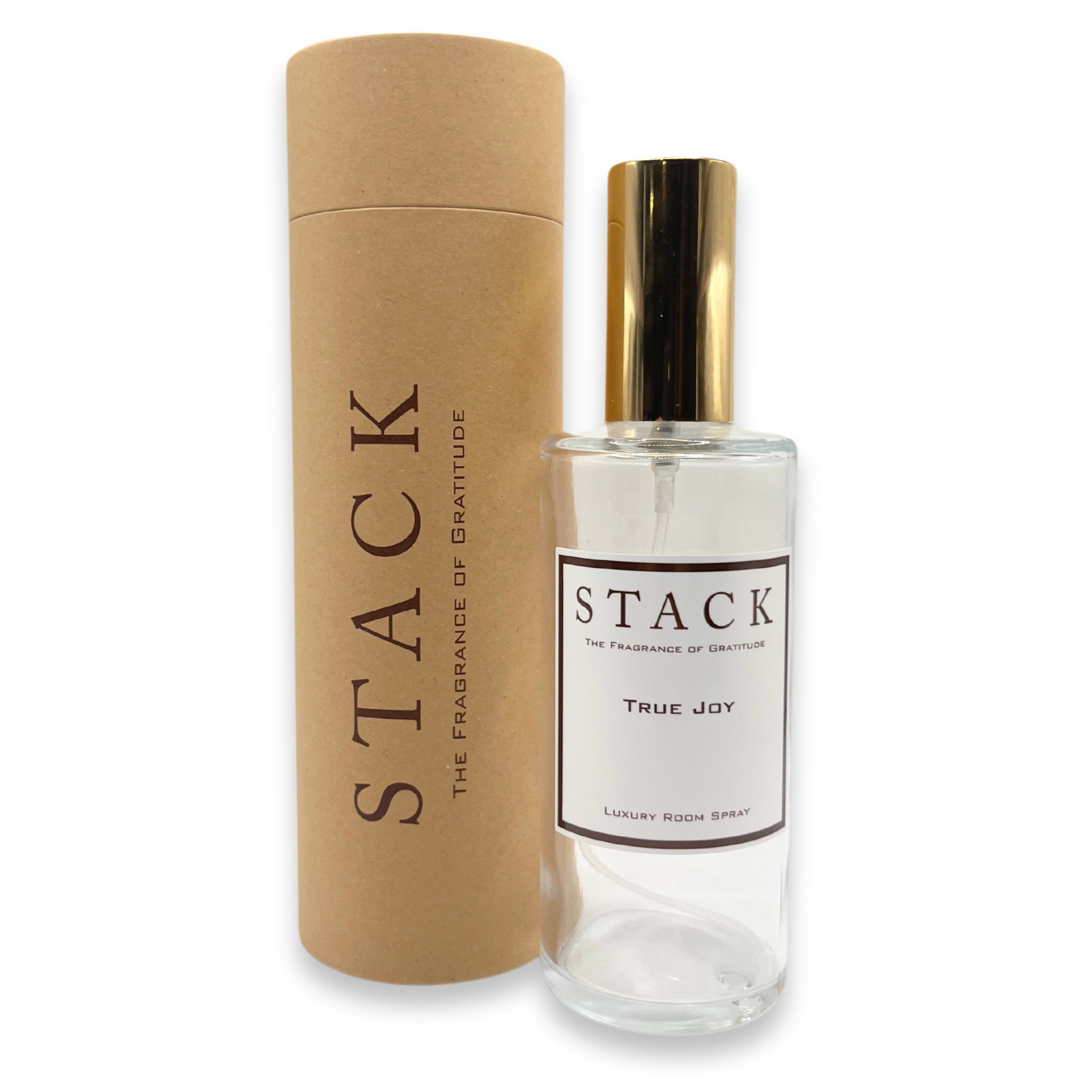 Each room spray is poured into a clear glass bottle. Bottles are 4oz with a fine mist spray nozzle.